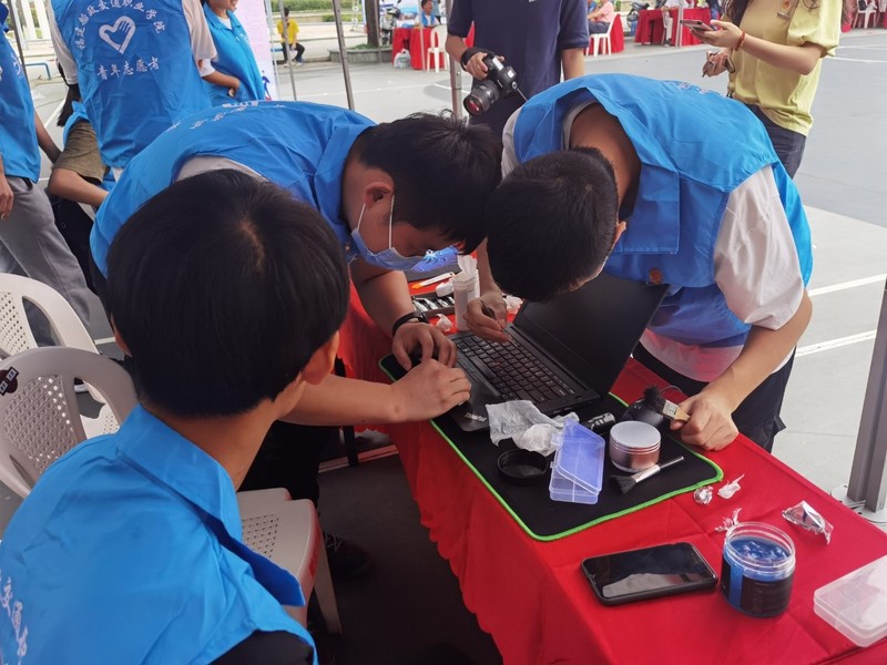‘E’芯人大學(xué)生志愿服務(wù)隊(duì)維修電腦是信息學(xué)院主打的一個(gè)專(zhuān)業(yè)特色,在本次職教周活動(dòng)中我們展示的內(nèi)容有電腦系統(tǒng)重裝、筆記本清灰、系統(tǒng)優(yōu)化加速、電腦后蓋加固、磁盤(pán)分區(qū)擴(kuò)充、安裝內(nèi)存條等,有效促進(jìn)我院與其他學(xué)院學(xué)生關(guān)于的電腦知識(shí)交流,增強(qiáng)“E”芯人大學(xué)生志愿服務(wù)隊(duì)維修電腦這一團(tuán)隊(duì)技術(shù)在校內(nèi)的知名度,還能宣傳信息學(xué)院的宗旨和理念,不斷的提高自身技術(shù),服務(wù)廣大師生。