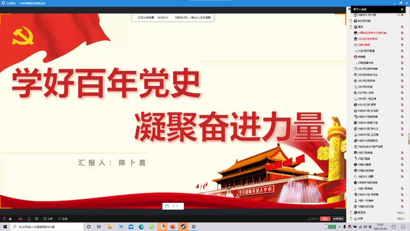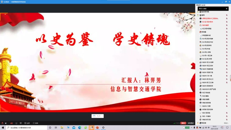 2021年5月30日,信息與智慧交通學院開展了第二期“學黨史,強信念,跟黨走”2018級預(yù)備黨員線上黨史學習心得交流會。本次線上交流會共有40位預(yù)備黨員參與,第二黨支部書記潘倩瀅老師與各位學生黨員進行交流與探討。