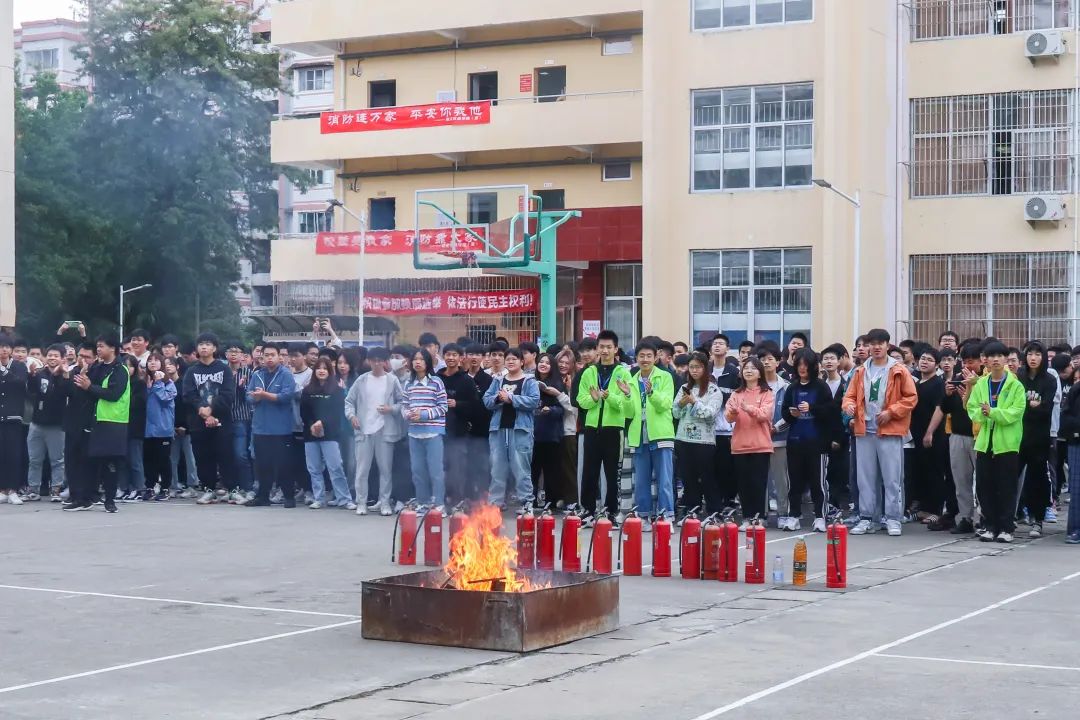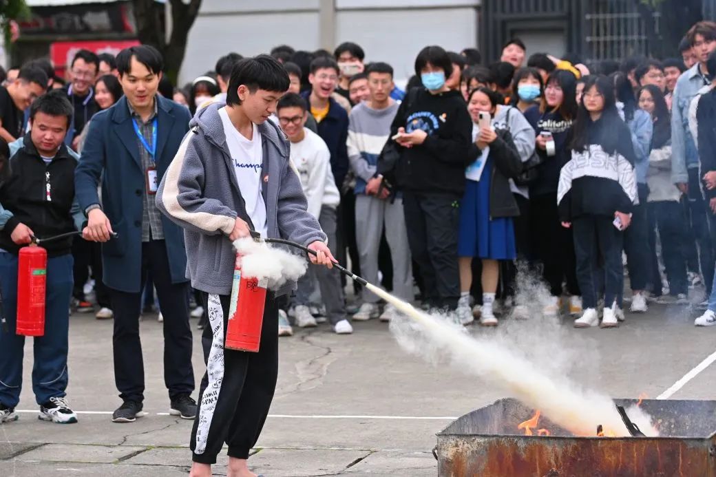 活動現(xiàn)場,鄭佳偉和張德華老師認(rèn)真指導(dǎo)師生們?nèi)绾握_使用滅火器,并親自為信息學(xué)子演示滅火器的使用并邀請學(xué)生們上場實際操作。