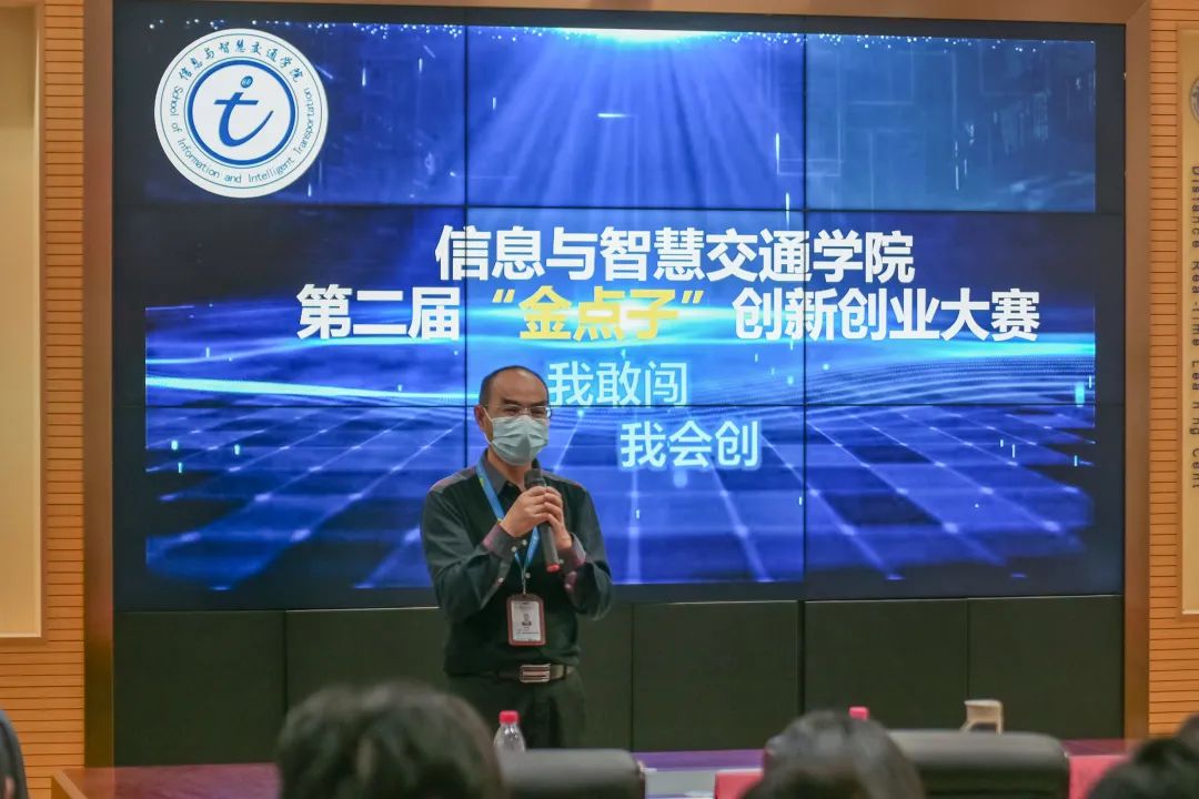 信息與智慧交通學院高度重視對學生創(chuàng)新意識的培養(yǎng),比賽評委為信息與智慧交通學院書記許友孝,院長賴萬欽,副院長黃炳樂,各教研室主任以及輔導員。