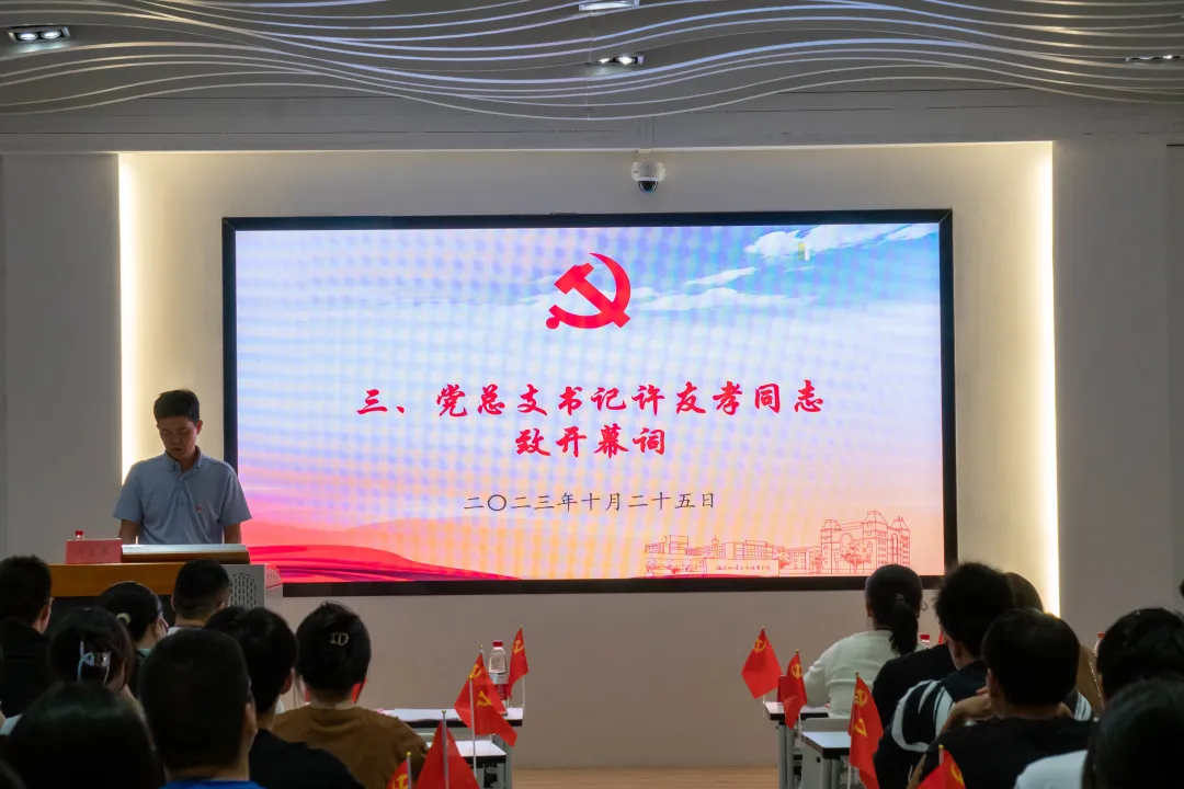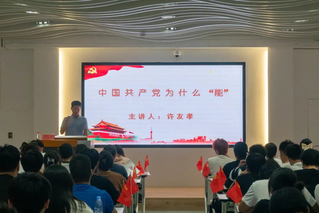 開班儀式結(jié)束后,黨總支書記許友孝為學(xué)員們作題為《中國共產(chǎn)黨為什么“能”》的黨課,本次課程圍繞“科學(xué)的理論指導(dǎo)”、“堅(jiān)定的理想信念”、“強(qiáng)大的組織優(yōu)勢”、“堅(jiān)實(shí)的群眾基礎(chǔ)”、“徹底的自我革命”五個(gè)方面進(jìn)行開展講解。