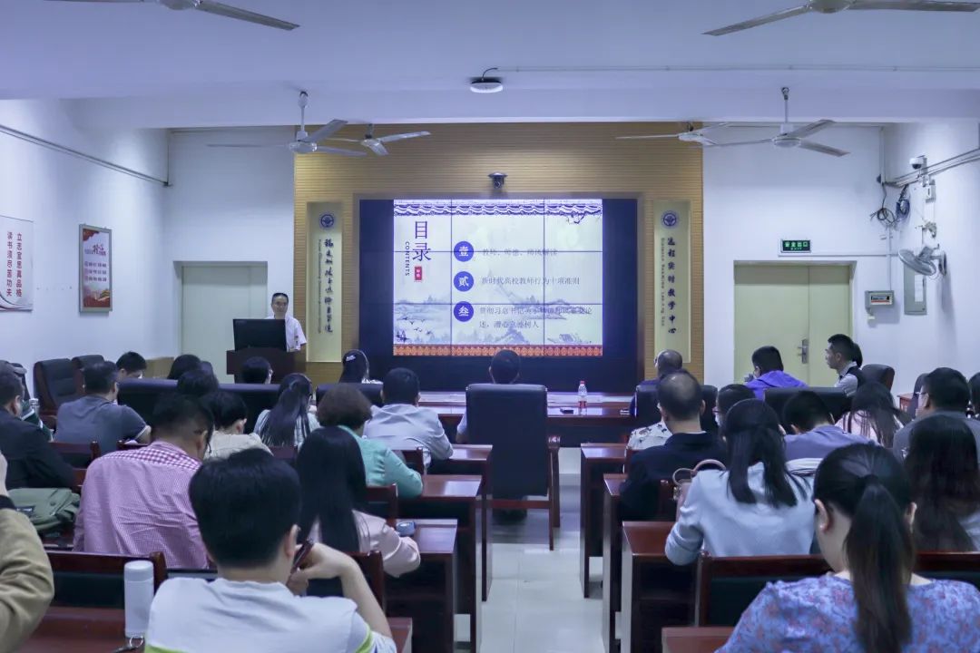 本次師德師風(fēng)專(zhuān)題培訓(xùn),我院邀請(qǐng)了現(xiàn)任福建農(nóng)林大學(xué)食品科學(xué)學(xué)院黨委書(shū)記、副教授蘇建涵,蘇教授從“教師、師德、師風(fēng)解讀”、“新時(shí)代高校教師行為十項(xiàng)準(zhǔn)則”、“貫徹習(xí)近平總書(shū)記關(guān)于師德師風(fēng)重要論述,潛心立德樹(shù)人”三個(gè)方面,詳細(xì)教授了新時(shí)代教師要如何做到“弘揚(yáng)高尚師德 潛心立德樹(shù)人”,引導(dǎo)全體教師結(jié)合自己的本職崗位,圍繞師德師風(fēng)建設(shè)進(jìn)行深度思考,認(rèn)識(shí)到教師職業(yè)道德的重要性。