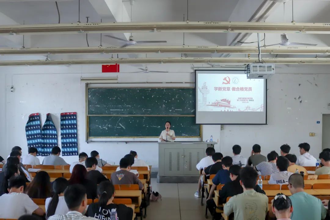 信息與智慧交通學院第二黨支部書記潘倩瀅以《學新黨章 做合格黨員》為主題,圍繞“十九大對黨章的修改”、“學習新黨章 做合格黨員”、“貫徹落實十九大精神”、“開啟新時代 踏上新征程”四個方面展開。