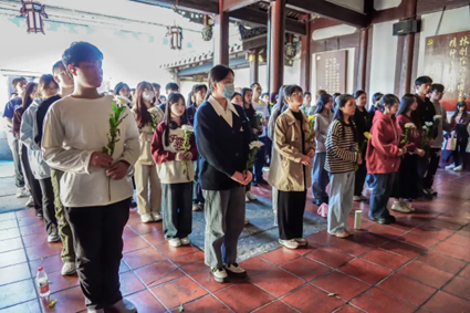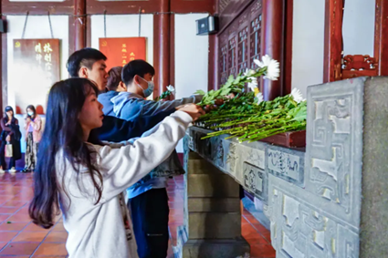 在儀式過后,老師與學(xué)員一同為革命先輩獻(xiàn)上花朵,表達(dá)對革命先輩的敬仰之情。