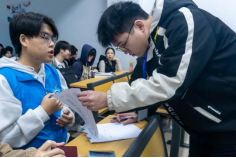 檢錄完成后,在省廳派駐的賽項監(jiān)督見證下,學(xué)院老師帶領(lǐng)志愿者分頭為各參賽選手開展兩輪抽簽加密,再二次加密完成后,各位選手由志愿者帶領(lǐng)到各自比賽場對應(yīng)的工位。