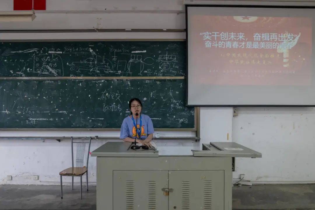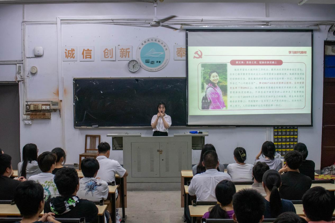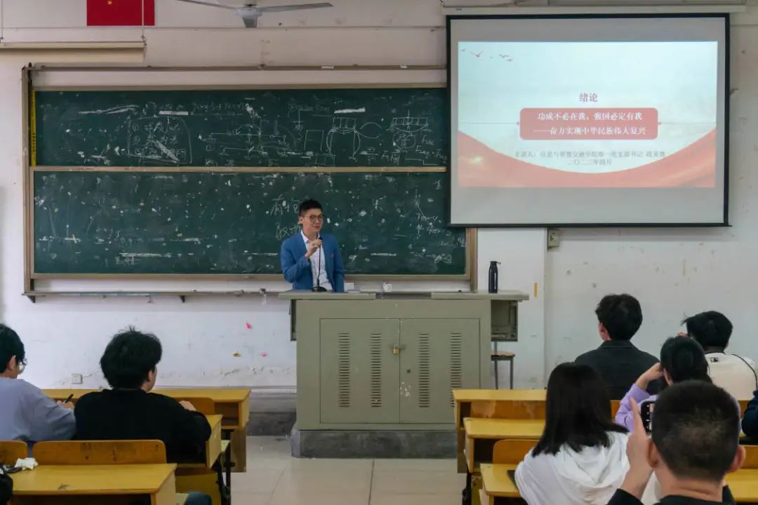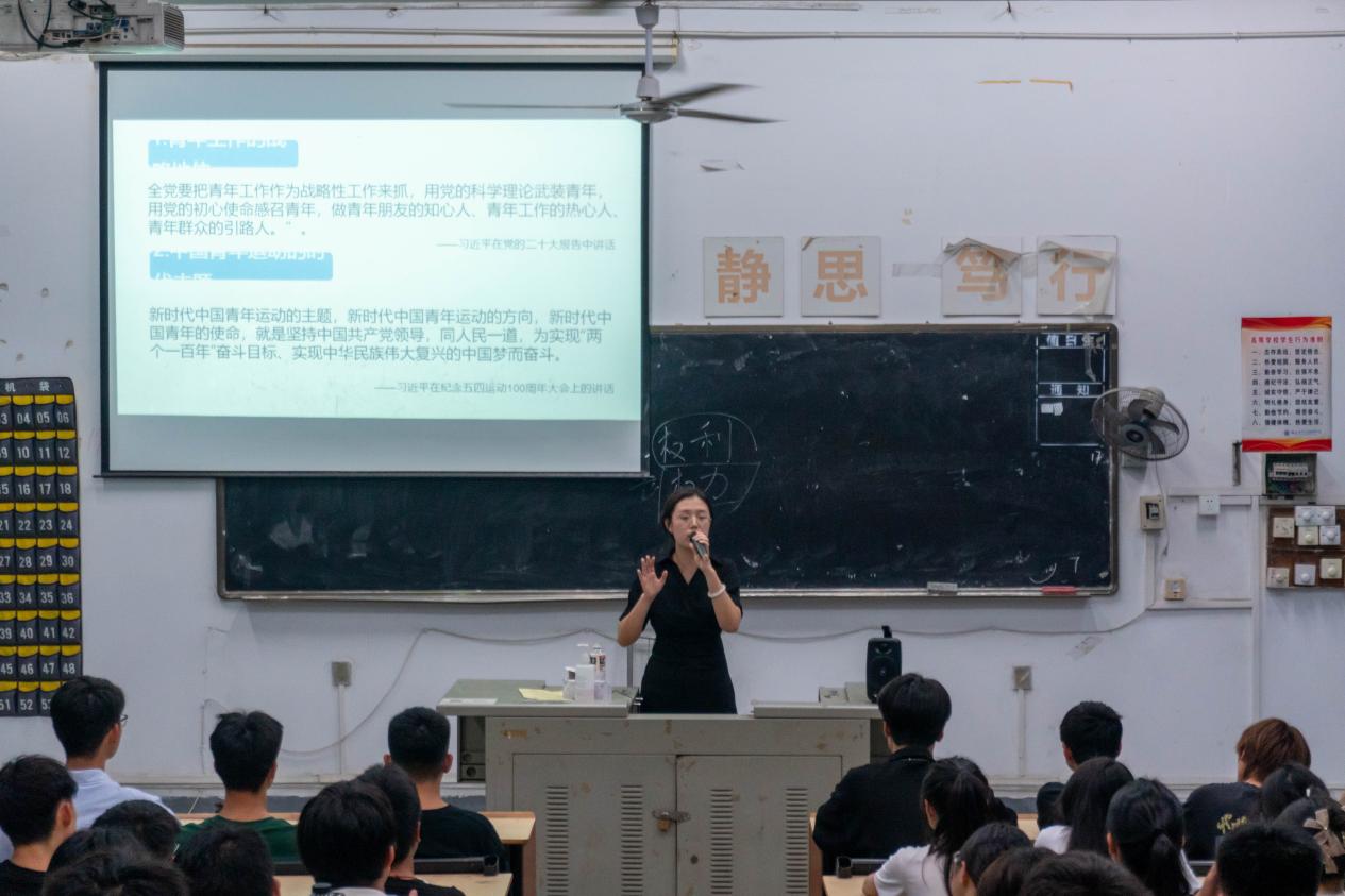 信息與智慧交通學(xué)院第二黨支部組織委員熊麗君以“‘實(shí)干創(chuàng)未來,奮楫再出發(fā)’奮斗的青春才是最美麗的青春”為主題為同學(xué)們講授本節(jié)黨課。