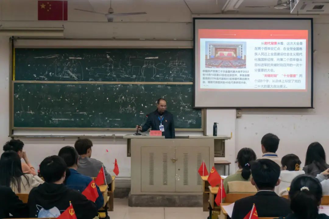 信息與智慧交通學(xué)院黨總支組織委員賴萬欽為同學(xué)們帶來第一節(jié)黨課“學(xué)習(xí)二十大永遠(yuǎn)跟黨走”