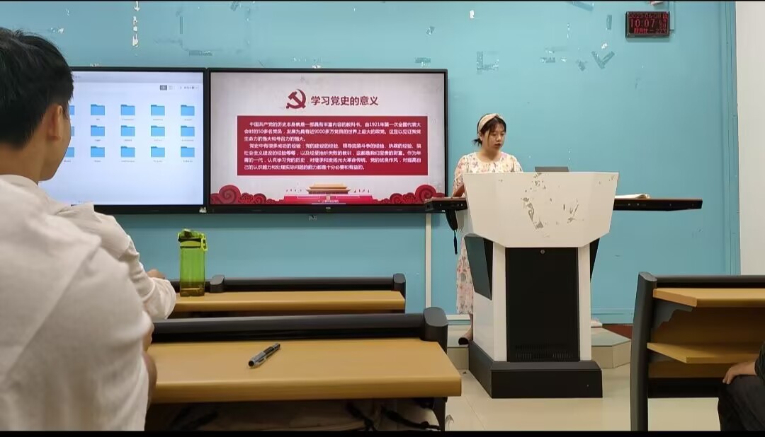 劉佳渝老師向同學(xué)們強(qiáng)調(diào)了學(xué)習(xí)黨史的意義,她表示,作為新時代青年,要做到學(xué)史明理、學(xué)史增信、學(xué)史崇德、學(xué)史力行,以學(xué)習(xí)黨的歷史為重點(diǎn),做到知史愛黨、知史愛國,在學(xué)習(xí)領(lǐng)悟中堅(jiān)定理想信念,在奮發(fā)有為中踐行初心使命。