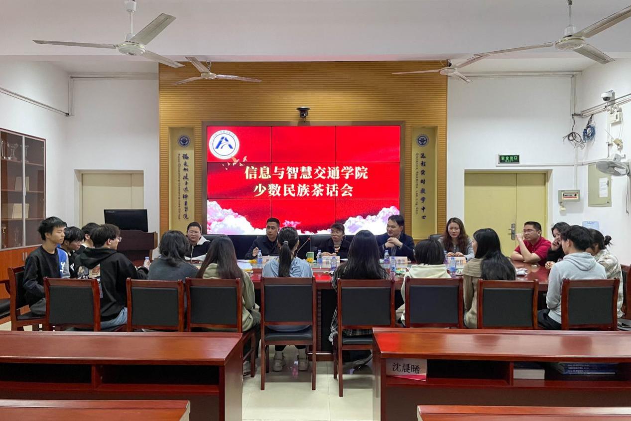 為鑄牢中華民族共同體意識(shí),傳遞對(duì)少數(shù)民族學(xué)生的關(guān)懷和溫暖,營(yíng)造民族團(tuán)結(jié)一家親的良好育人氛圍, 3月20日下午,信息與智慧交通學(xué)院于在福道園自強(qiáng)樓2-1召開少數(shù)民族茶話會(huì)。信息與智慧交通學(xué)院黨總支副書記柳燕妮、輔導(dǎo)員張德華、輔導(dǎo)員陳妍君以及我院10余名少數(shù)民族學(xué)生代表和寶島臺(tái)灣學(xué)生參與此次茶話會(huì)。本次茶話會(huì)由信息與智慧交通學(xué)院輔導(dǎo)員周文廣主持。
