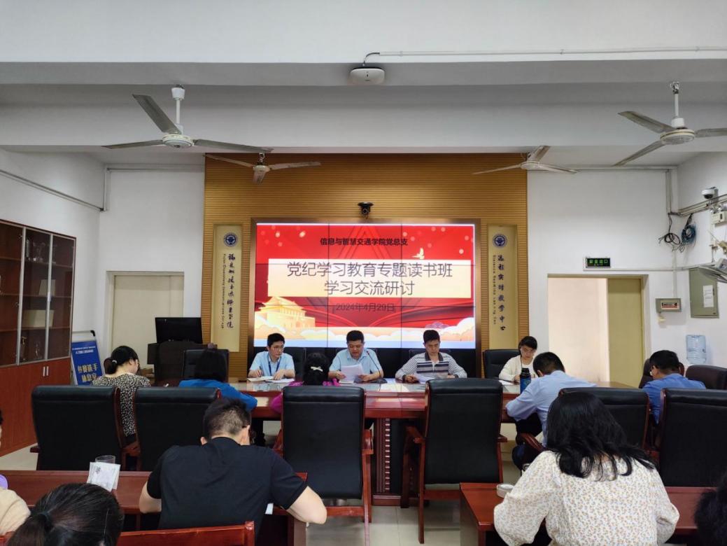 4月29日下午,信息與智慧交通學(xué)院黨總支于福道園自強樓2-1召開黨紀學(xué)習(xí)教育讀書班學(xué)習(xí)研討會。會議由黨總支書記許友孝主持,學(xué)院全體教職工參加學(xué)習(xí)研討。