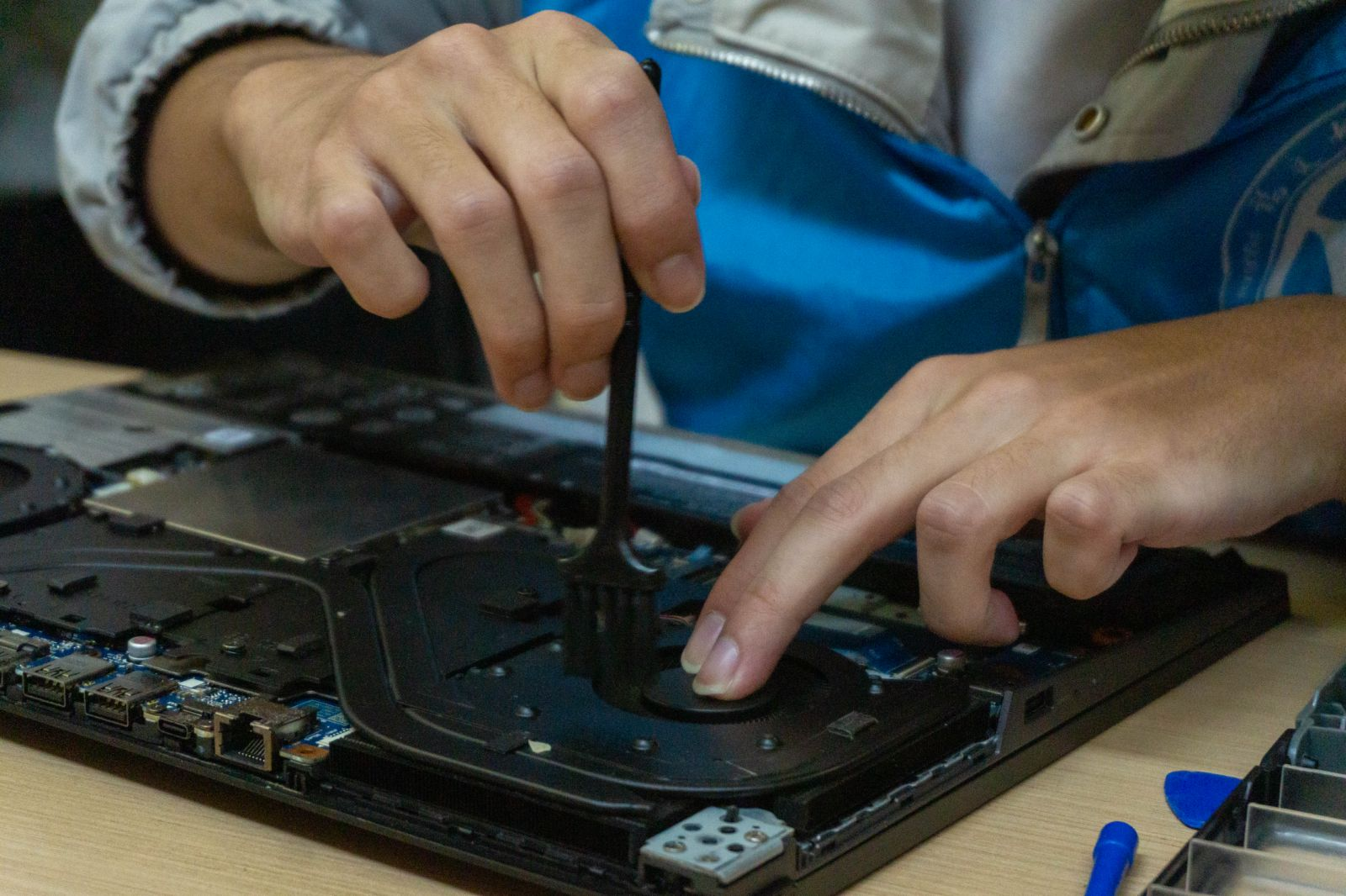 在志愿服務的現(xiàn)場,志愿者們憑借其精湛的技藝和周到的服務精神,為師生們提供了電腦風扇的細致清灰以及屏幕的專業(yè)清潔服務。此外,志愿者們還向師生們傳播了關于電腦日常護理與保養(yǎng)的寶貴知識,提醒大家在使用電腦的過程中需注意防塵和散熱的重要性,防止因灰塵積聚而引發(fā)的電腦故障問題。