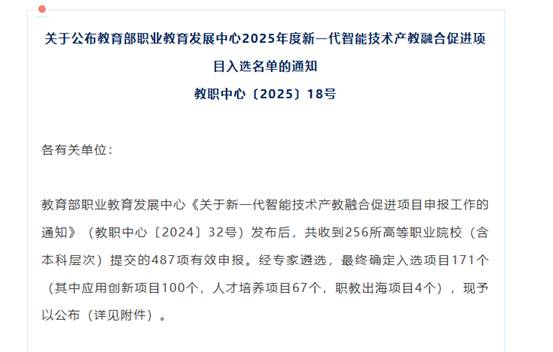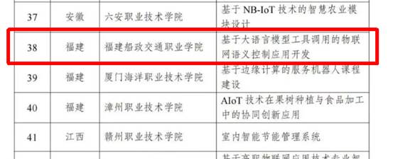日前,教育部職業(yè)教育發(fā)展中心公布了2025年度新一代智能技術(shù)產(chǎn)教融合促進(jìn)項(xiàng)目入選名單。我院項(xiàng)目“基于大語言模型工具調(diào)用的物聯(lián)網(wǎng)語義控制應(yīng)用開發(fā)”入選為應(yīng)用創(chuàng)新項(xiàng)目。