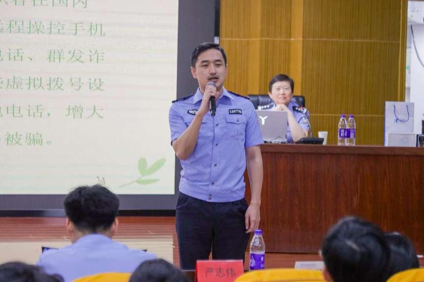 隨后,倉山分局刑偵大隊嚴(yán)志偉警官結(jié)合轄區(qū)內(nèi)的實(shí)際情況,對近期發(fā)生的電信詐騙案例進(jìn)行了詳盡的分享。他通過剖析具體案情,生動展示了詐騙手法的多樣性和迷惑性,并提供了實(shí)用的識別技巧和防范建議,提醒師生們務(wù)必提高警惕,保護(hù)好自己的個人信息和財產(chǎn)安全。