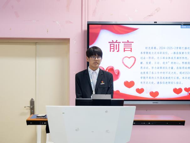 會(huì)上,院團(tuán)委、學(xué)生會(huì)各部門(mén)依次上臺(tái)進(jìn)行述職匯報(bào),回顧本學(xué)期工作成果與不足。各部門(mén)以數(shù)據(jù)和案例為支撐,全面總結(jié)了在組織建設(shè)、活動(dòng)開(kāi)展、服務(wù)同學(xué)等方面的工作成效。同時(shí)也對(duì)工作中存在的問(wèn)題進(jìn)行了深入反思,形成重點(diǎn)改進(jìn)措施清單,對(duì)未來(lái)工作計(jì)劃做出規(guī)劃,提出具體行動(dòng)方案。