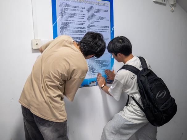 活動中,工作人員深入教學樓、宿舍區(qū)等人員密集區(qū)域開展政策宣傳,嚴格遵循標準化流程,科學規(guī)劃投放點位并粘貼海報,確保政策信息精準觸達每位同學,幫助他們深入理解政策內涵,為職業(yè)發(fā)展提供有力指引。