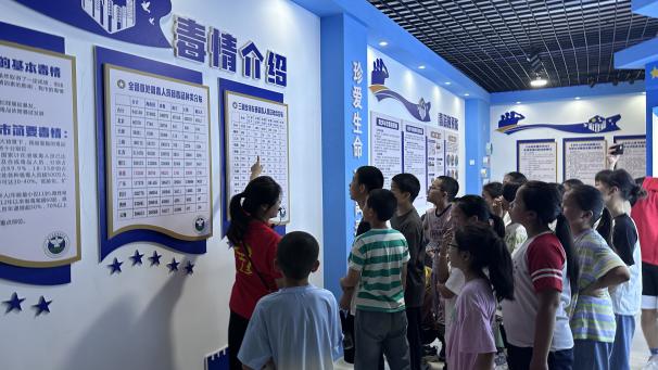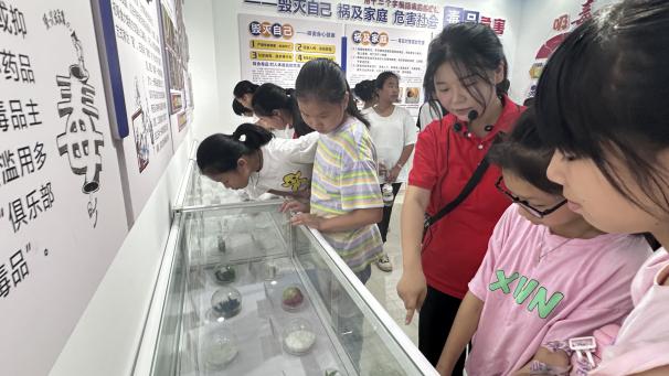 在泰寧縣禁毒教育展廳,踐行團成員化身為“禁毒宣講員”,帶領(lǐng)孩子們近距離觀察仿真毒品樣本,解讀毒情數(shù)據(jù)看板。通過玻璃展柜里的“偽裝陷阱”、墻上觸目驚心的案例,將抽象的禁毒知識具象化。當孩子們踮起腳尖辨認“彩色糖果”般的新型毒品時,防毒拒毒的安全意識已實現(xiàn)有效滲透——這是實踐團在“三下鄉(xiāng)”活動中,為鄉(xiāng)土青少年構(gòu)建安全防護體系的重要實踐縮影。