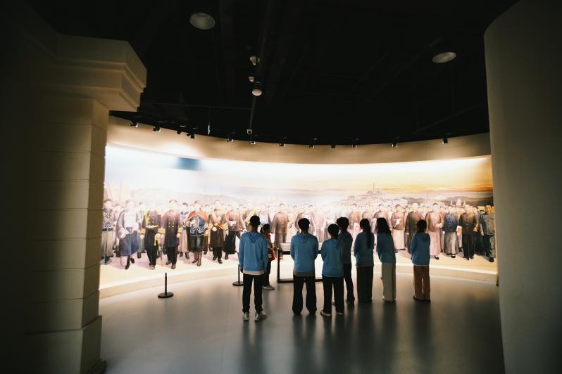 午后轉(zhuǎn)場辛亥革命紀(jì)念館。沿著“福建革命歷程”展區(qū)一路向前,手稿、老照片、舊軍帽依次排開,像一條沒有回頭路的長河。最讓大家停步的是古田會議專題柜:一張會議記錄復(fù)印件上,“思想建黨、政治建軍”八個字被圈了又圈,旁邊的參會人員回憶錄邊角卷翹,紙面泛黃。有人伸手想摸,又縮回來,只在筆記本上重重寫了兩行:原來課本里的“重點”,當(dāng)年真的是用毛筆劃出來的。紅軍斗笠輕得像玩具,輪流戴上拍照時,卻莫名沉得不敢笑太大聲——帽檐下的陰影里,藏著先輩的槍林彈雨,也藏著我們的今天。
