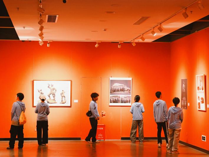 實踐團來到福建省美術(shù)館,參觀 “紀(jì)念抗戰(zhàn)勝利 80 周年 —— 福建省第八屆青年美術(shù)作品展”。80余件油畫、雕塑、版畫排成一條時光隧道。油畫《閩海烽火》里天空是燃燒的橙紅,海面是沉郁的深褐,仿佛能聽見炮火在耳邊炸響;雕塑《最后的家書》只有薄薄一頁銅紙,卻重得讓展廳瞬間安靜。大家放慢腳步,不敢大聲呼吸,好像怕驚動那段歷史。留言墻前,有人寫下“今日盛世,已如你們所愿”,也有人只畫了一顆小小的愛心。走出館門,陽光刺眼,卻沒人抬手遮,有人輕聲說:“原來和平是有顏色的,是畫里的火光熄滅后,留在我們眼里的光?!?/span>