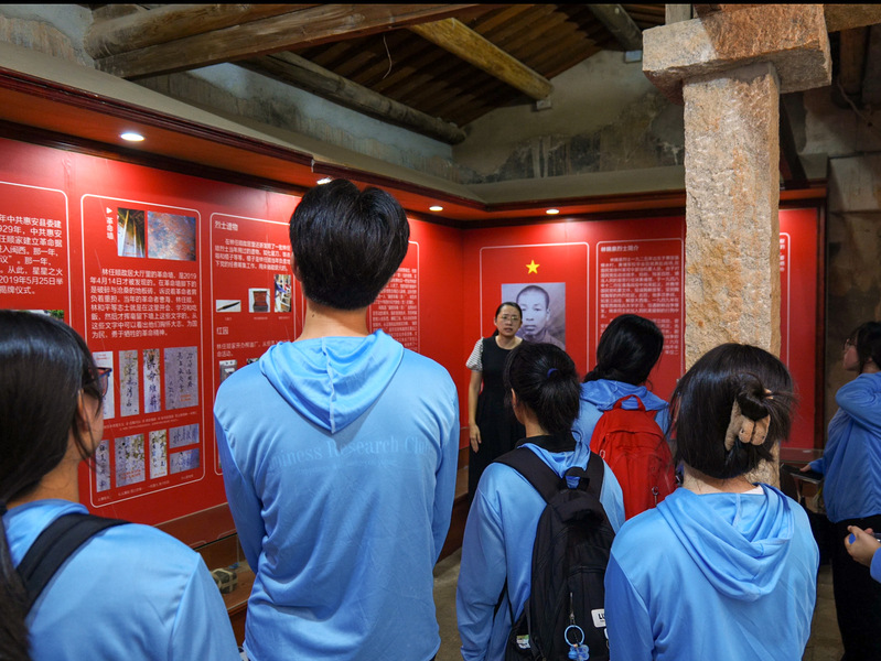 林伯承烈士在動蕩年代克服困難辦學(xué),既傳授知識,又潛移默化地傳遞革命思想,為革命事業(yè)培養(yǎng)了一批又一批有志青年。林德順烈士在革命經(jīng)濟工作中恪盡職守,犧牲后,其妻子挑起還債重擔(dān),靠勤勞雙手走街串巷售賣貨物,省吃儉用攢錢還債,堅守承諾與初心。這些紅色故事讓實踐團成員們深受震撼,他們更加深刻地理解了革命先輩們?yōu)榱藝液腿嗣袼龀龅木薮鬆奚头瞰I。