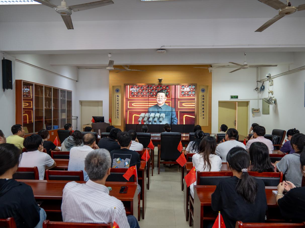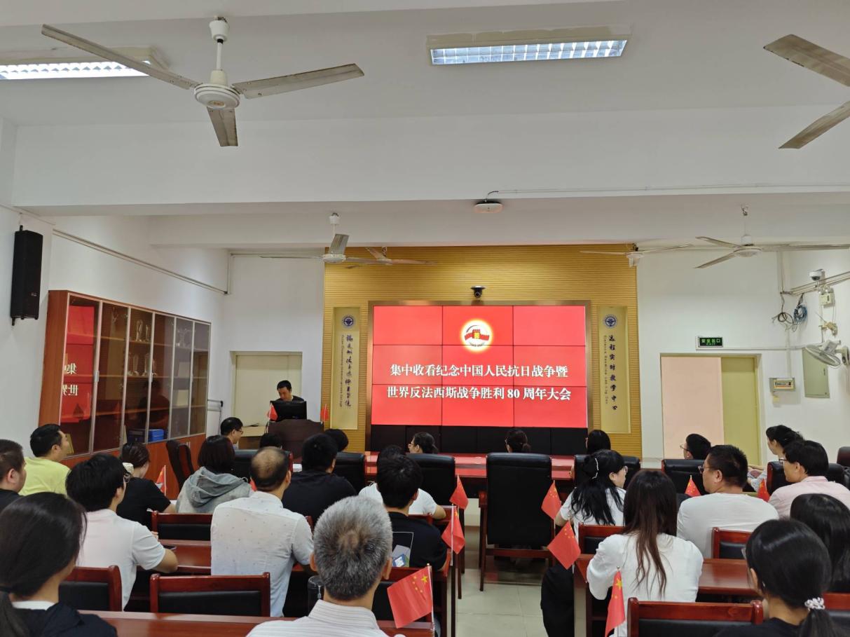 2025年是紀(jì)念中國(guó)人民抗日戰(zhàn)爭(zhēng)暨世界反法西斯戰(zhàn)爭(zhēng)勝利80周年。80年前在中國(guó)共產(chǎn)黨倡導(dǎo)下建立的抗日民族統(tǒng)一戰(zhàn)線最廣泛地團(tuán)結(jié)了一切可以團(tuán)結(jié)的抗日力量,鑄成了全民族抗戰(zhàn)的堅(jiān)固長(zhǎng)城,取得了抗日戰(zhàn)爭(zhēng)的偉大勝利,為世界反法西斯戰(zhàn)爭(zhēng)的勝利做出了巨大貢獻(xiàn)。收看過(guò)程中,會(huì)場(chǎng)秩序井然,全體人員聚精會(huì)神,認(rèn)真聆聽(tīng)中共中央總書(shū)記、國(guó)家主席、中央軍委主席習(xí)近平發(fā)表的重要講話。屏幕中傳來(lái)雄壯嘹亮的國(guó)歌,全體師生莊嚴(yán)肅立,循著現(xiàn)場(chǎng)歌聲齊聲高唱。鏗鏘旋律縈繞耳畔,每個(gè)人的心中掀起澎湃共鳴。