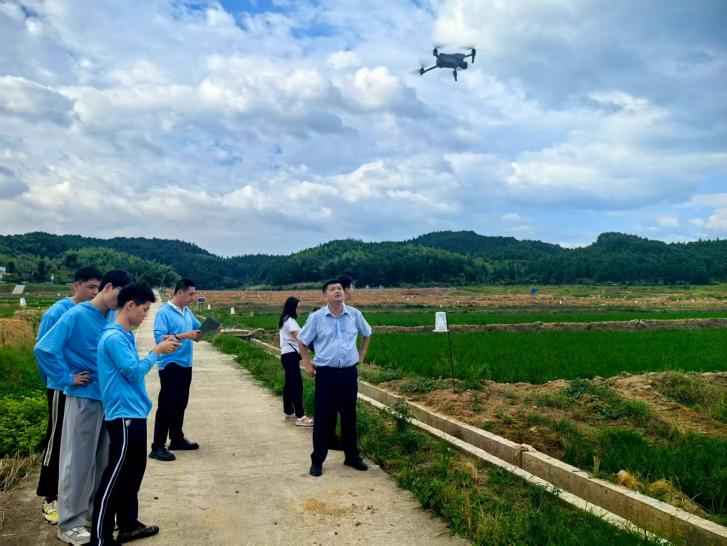 “E 芯人?遙感稻衛(wèi)鄉(xiāng)村振興促進團”利用團隊研發(fā)技術(shù)用無人機采集數(shù)據(jù)
