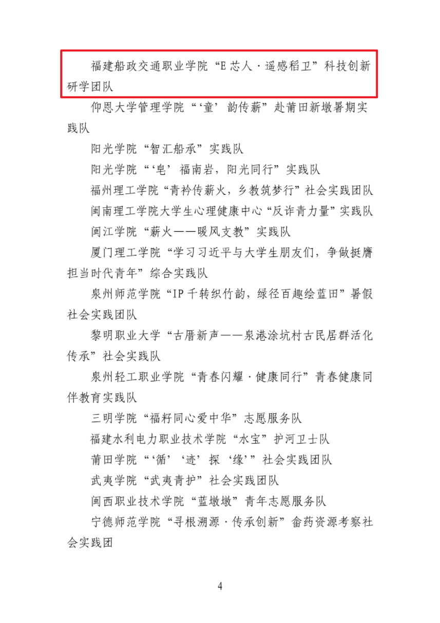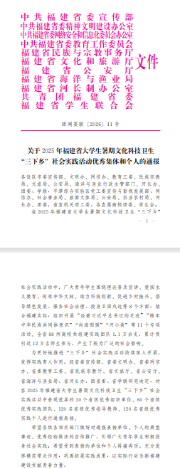 近日,共青團福建省委辦公室公示2025年大學(xué)生暑期“三下鄉(xiāng)”社會實踐活動表揚名單,由我院林少丹教授率領(lǐng)的“E芯人·遙感稻衛(wèi)”科技創(chuàng)新研學(xué)團榮獲省級優(yōu)秀實踐團隊。