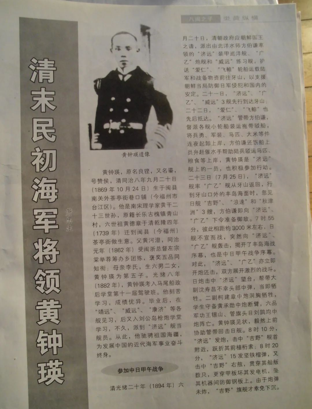 叔祖黃鐘瑛系民國(guó)第一任海軍總長(zhǎng)兼海軍總司令、上將