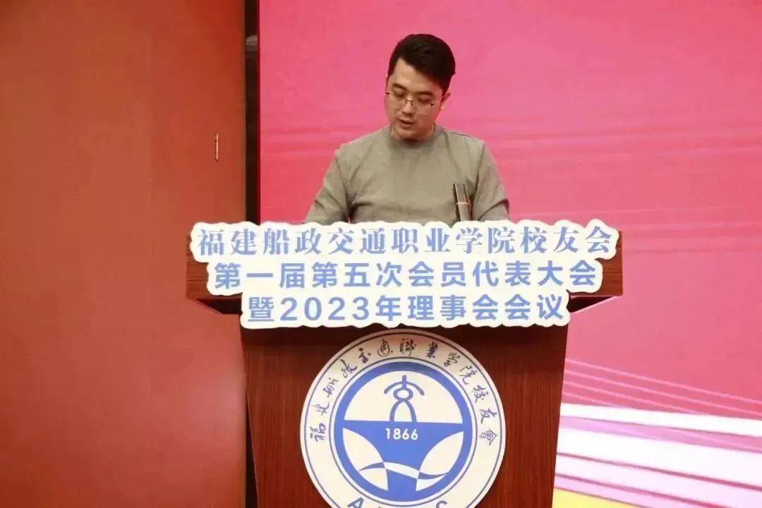 1月13日,福建船政交通職業(yè)學(xué)院校友會第一屆第五次會員代表大會暨2023年理事會會議在學(xué)校福船園召開,學(xué)院黨委書記陳宜大,黨委副書記、院長陳錦輝,黨委委員、副院長、校友會會長陳艷紅,校友會常務(wù)副會長郭建康,學(xué)校各機(jī)關(guān)部門長,各二級學(xué)院黨政領(lǐng)導(dǎo)、校友工作站代表,校友會理事會、監(jiān)事會、秘書處成員,校友代表等共160多人參加會議。大會由學(xué)校馬克思主義學(xué)院院長、校友會秘書長黃奕主持。