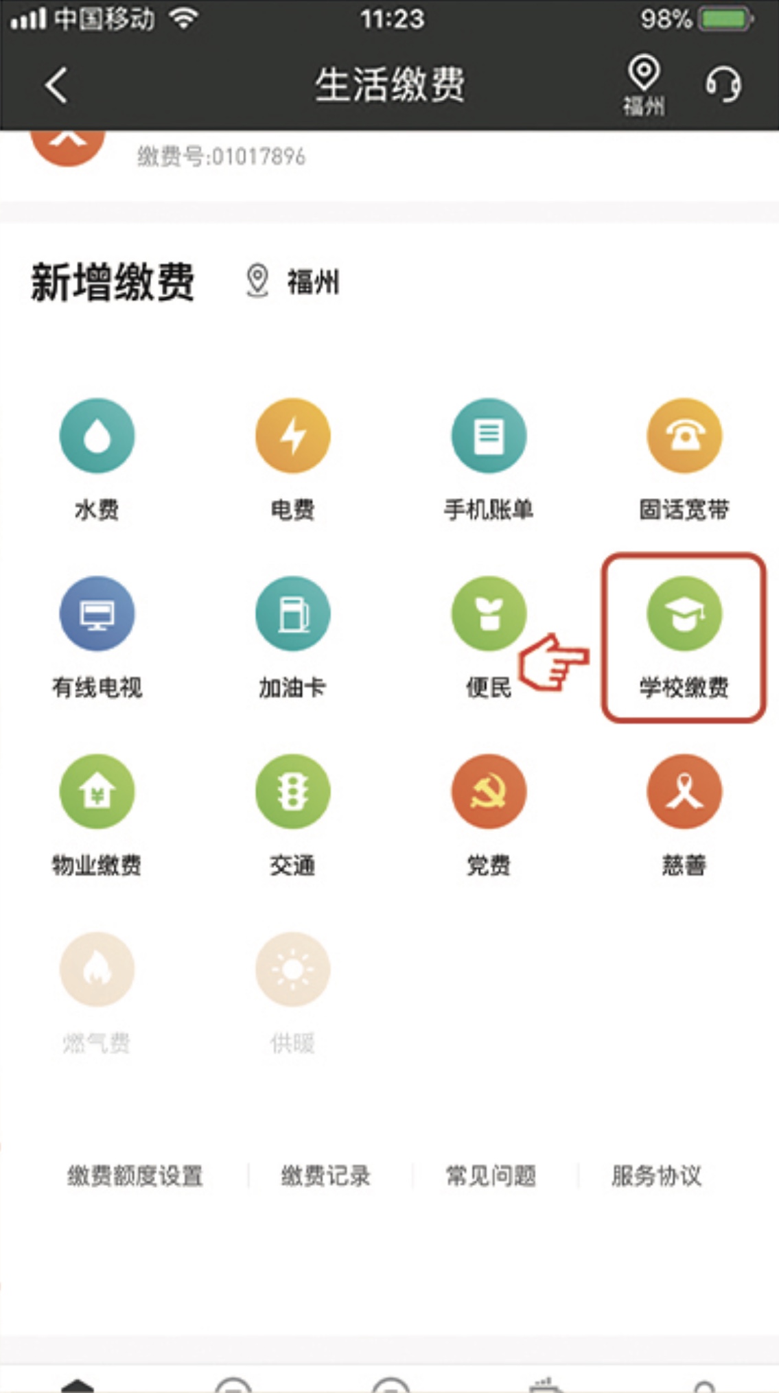 點擊“學(xué)校繳費”
