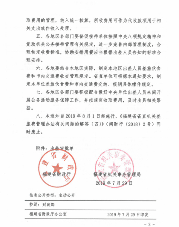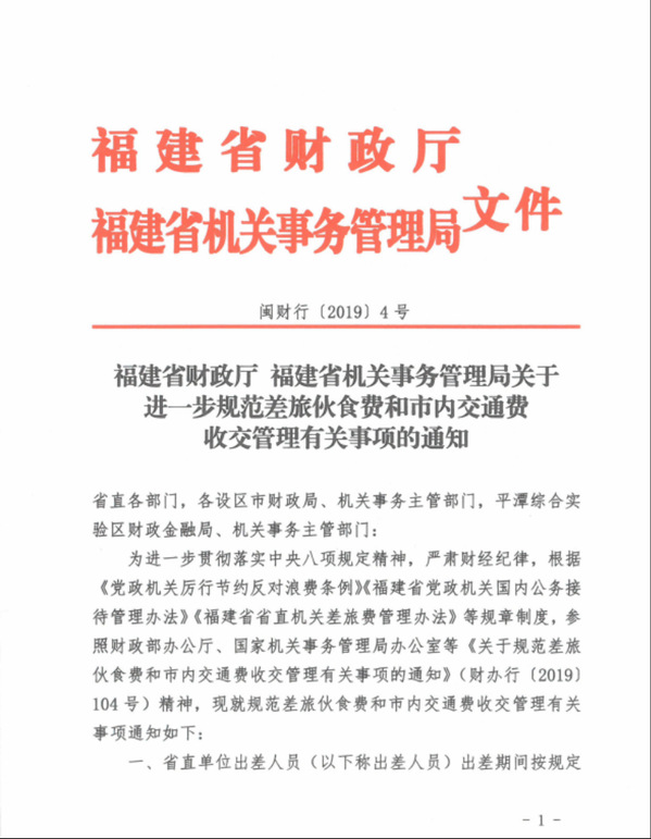 福建省財(cái)政廳 福建省機(jī)關(guān)事務(wù)管理局關(guān)于進(jìn)一步規(guī)范差旅伙食費(fèi)和市內(nèi)交通費(fèi)收交管理有關(guān)事項(xiàng)的通知