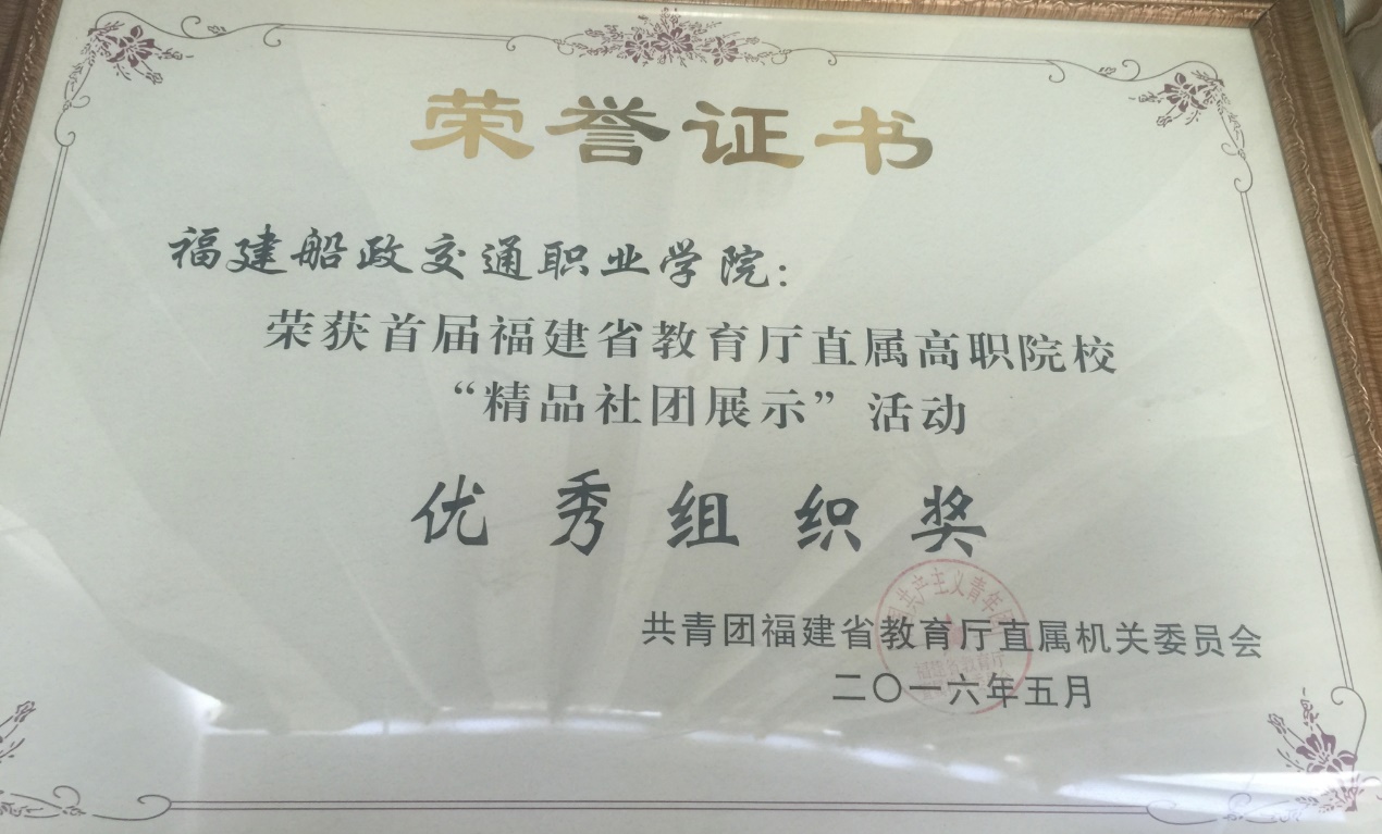 榮獲首屆福建省教育廳直屬高職院?!熬飞鐖F(tuán)展示”活動優(yōu)秀組織獎