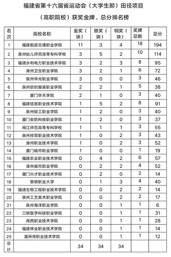 【省運(yùn)風(fēng)采】 祝賀我院榮獲福建省第16屆運(yùn)動(dòng)會(huì)(大學(xué)生部) 田徑比賽金牌數(shù)第一、團(tuán)體總分第一名!