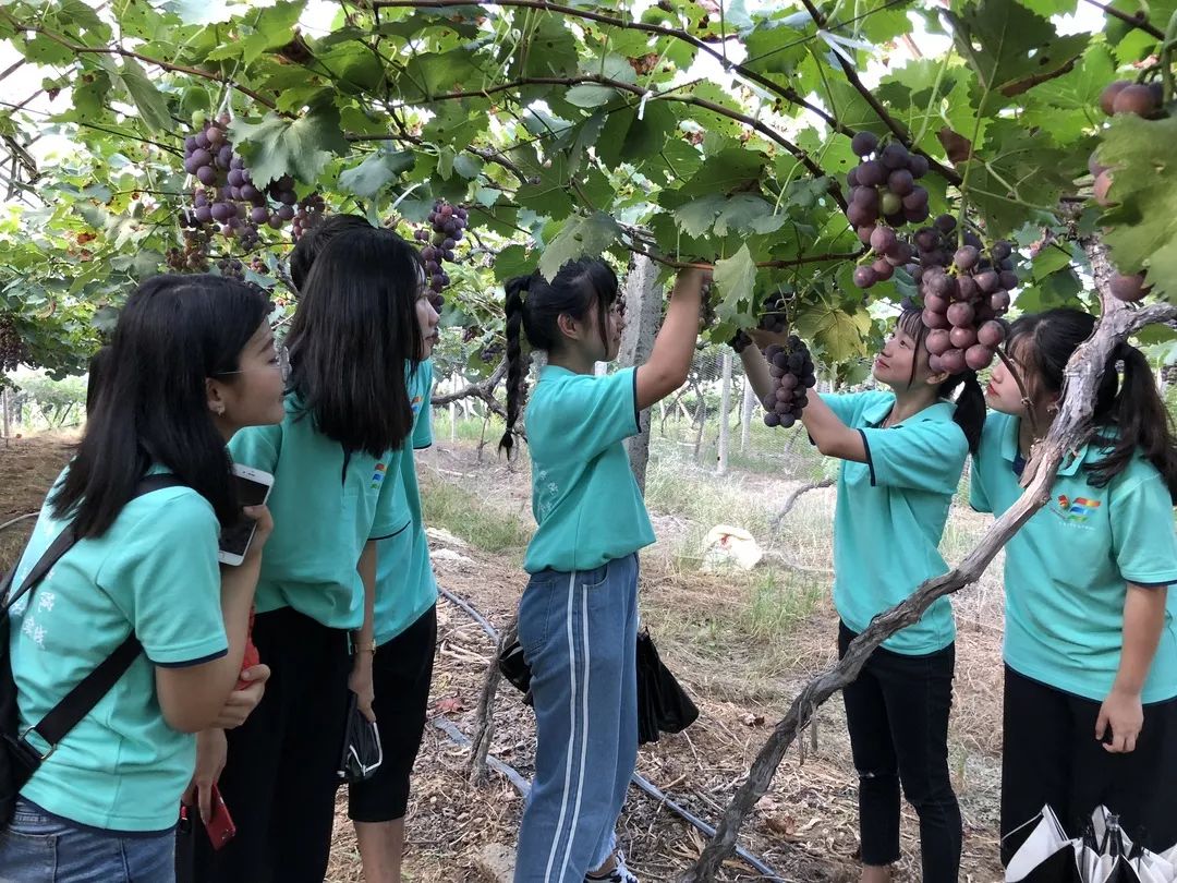 實踐團的同學們親手采摘葡萄