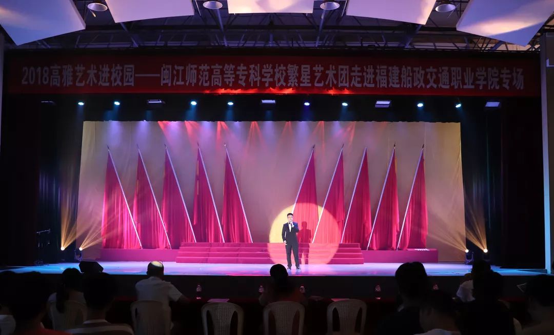 9月26日14:30,“閩江師范高等??茖W(xué)校繁星藝術(shù)團(tuán)走進(jìn)福建船政交通職業(yè)學(xué)院專場(chǎng)”在我校文體中心舉行。