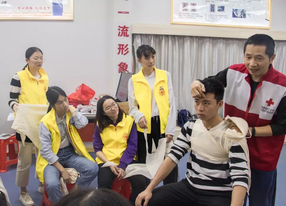 本次培訓邀請到了福建省紅十字現(xiàn)場救護培訓中心的許艷云老師、魏勇生老師和周冠男老師為我們指導救護員培訓工作。