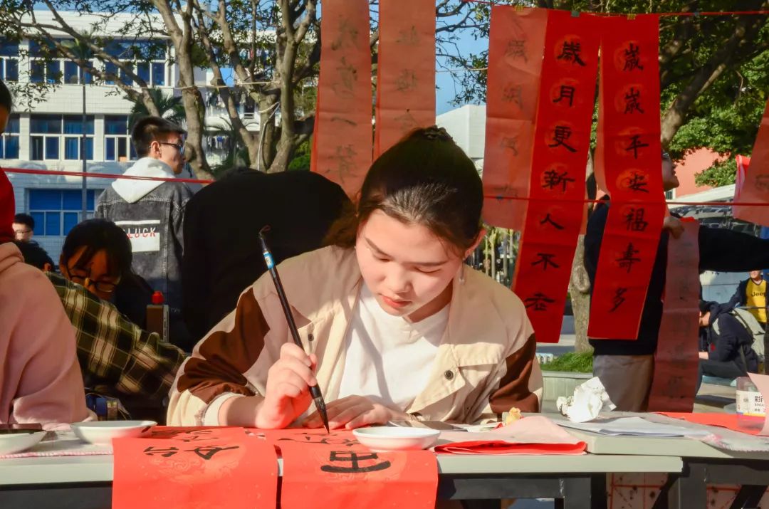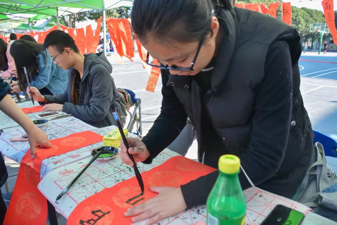 本次活動(dòng)不僅讓師生們感受到久違的濃濃年味,更重要的是傳承傳統(tǒng)文化,促進(jìn)當(dāng)代大學(xué)生對(duì)傳統(tǒng)文化的繼承!活動(dòng)中送出的不只是春聯(lián),更是對(duì)校園的祝福對(duì)祖國(guó)未來(lái)蓬勃發(fā)展的期望。一幅幅帶著清新墨香的春聯(lián),一個(gè)個(gè)帶著美好祝愿的“?!弊?,是我們對(duì)美好青春生活的向往,是對(duì)祖國(guó)改革開放40周年與船政學(xué)院152周年來(lái)翻天覆地變化感嘆與歌頌!