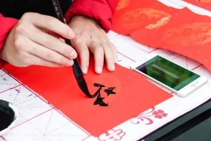老師同學們可在簽到處領取對聯(lián)紙自行DIY春聯(lián)寫下對家人親朋好友的祝福。