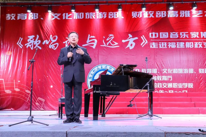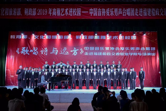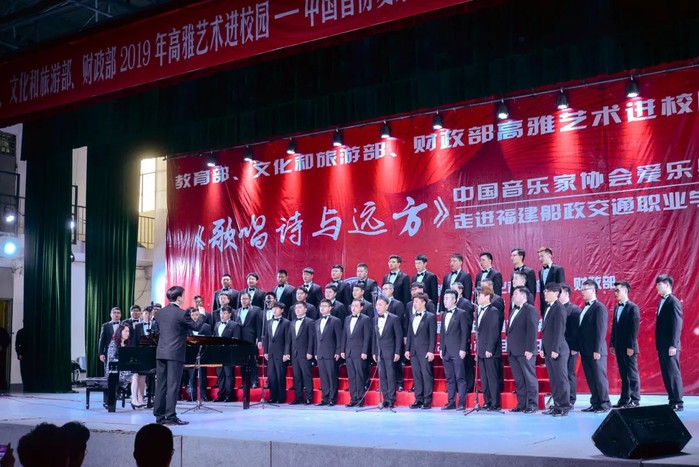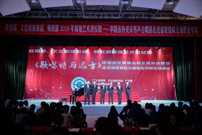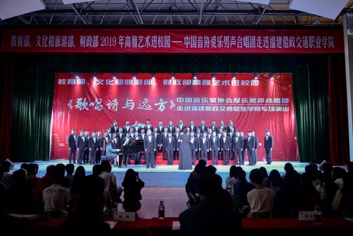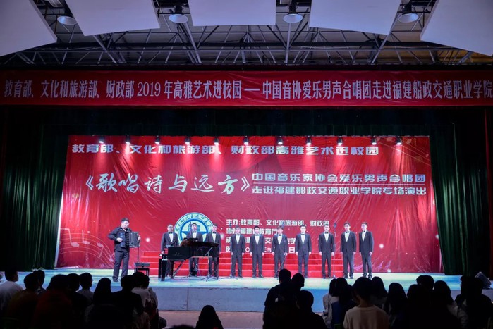 3月20日下午3:00,由教育部、文化和旅游部、財政部主辦,由福建教育廳、共青團福建船政交通職業(yè)學院委員會承辦的高雅藝術團進校園《歌唱詩與遠方》中外歌曲珍品音樂會在我校北區(qū)文體中心舉行。1050多名師生共同享受了這場視覺和聽覺饕餮盛宴。