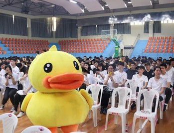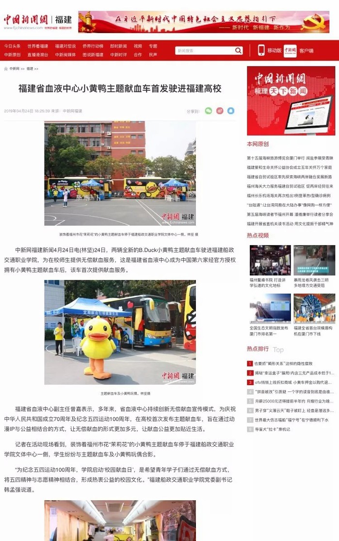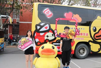 4月24日,兩輛全新布置的B.Duck小黃鴨主題獻(xiàn)血車開進(jìn)我校,開啟“青春心向黨·建功新時代”愛心獻(xiàn)血活動。