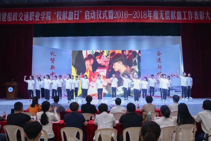 福建省血液中心副主任曾嘉、福建省血液中心獻(xiàn)血服務(wù)一科科長陳建彬、福建省血液中心獻(xiàn)血服務(wù)二科科長陳岑、福建船政交通職業(yè)學(xué)院黨委副書記韓孟強(qiáng)、福建船政交通職業(yè)學(xué)院學(xué)生管理處處長王心金、福建船政交通職業(yè)學(xué)院黨委工作部副主任黃奕及校團(tuán)委相關(guān)人員、各系部團(tuán)總支書記、受表彰先進(jìn)集體及個人等近400人參加本次大會,團(tuán)委副書記陳慧主持大會。