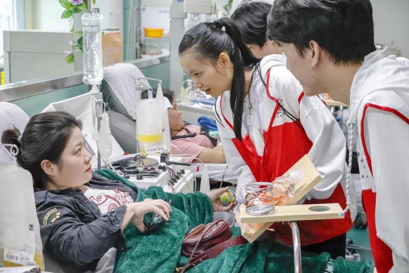10月26日上午,受到福建省血液中心的邀請下,我校與福州外語外貿(mào)學院的小伙伴一起參加了本次機采血小板的宣傳活動。
