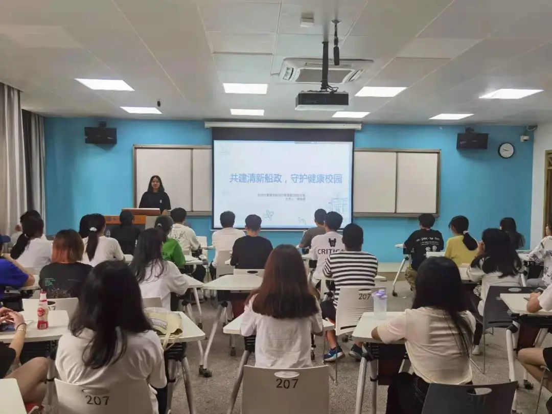 我校各個團支部組織開展“擁抱清新船政 守護健康校園”主題團日活動。