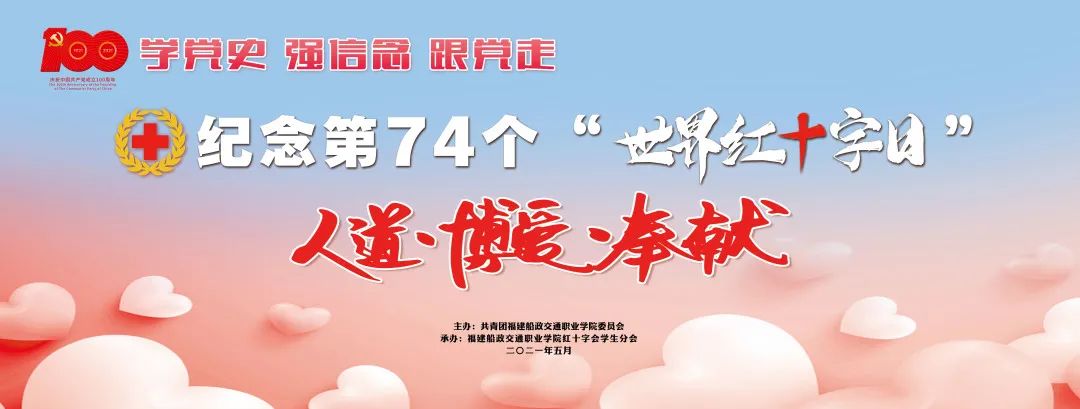 紅十字是一種精神,更是一面旗幟。此次博愛周系列活動是船政交通青年學史力行的實際行動,也是船政師生學黨史、悟思想、辦實事的生動實踐。博愛周活動增加了師生對紅十字組織、紅十字知識和紅十字精神的理解,增強了人道主義的使命感和奉獻社會的責任感,進一步弘揚了“人道、博愛、奉獻”的紅會精神。