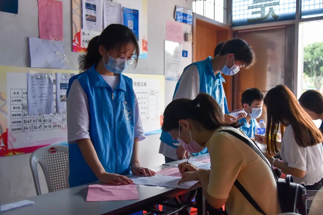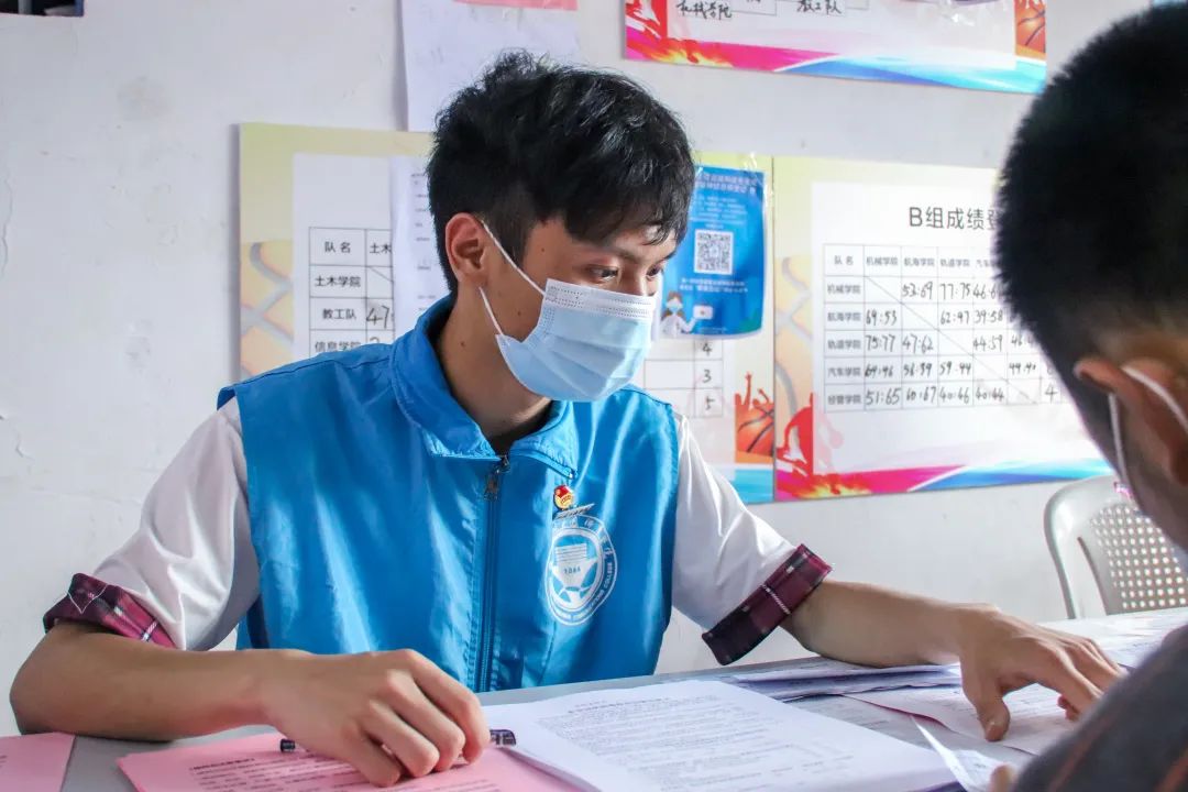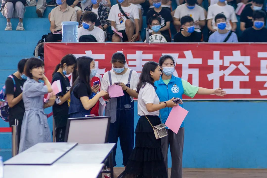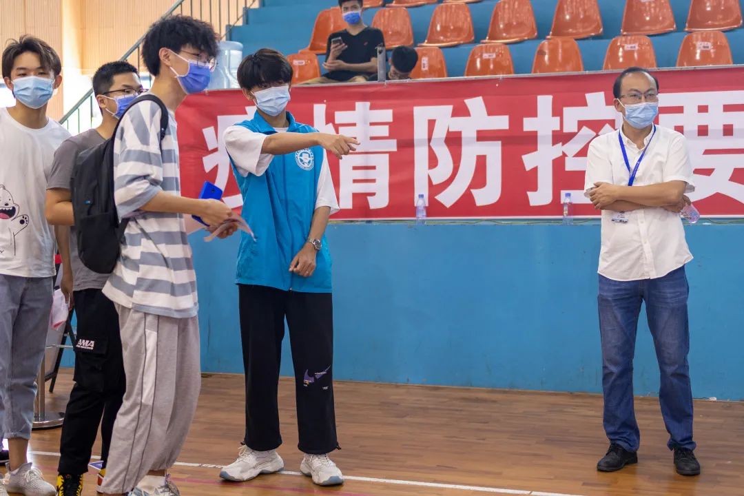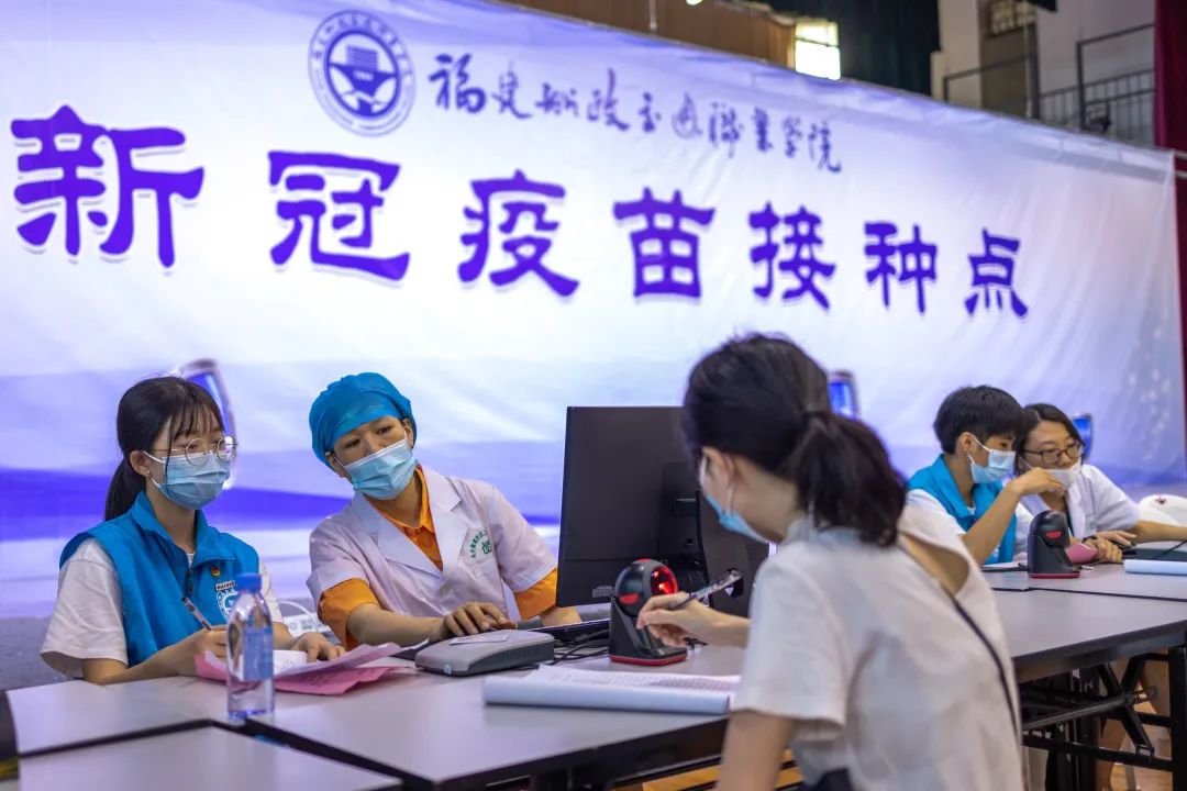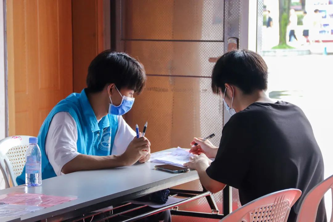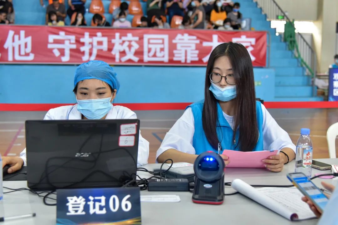 志愿者提醒師生出示接種預約登記信息,協(xié)助填寫登記單、維護現(xiàn)場秩序、耐心解答師生們對于接種新冠疫苗流程的疑問,為疫苗接種工作把好第一道“關口”。