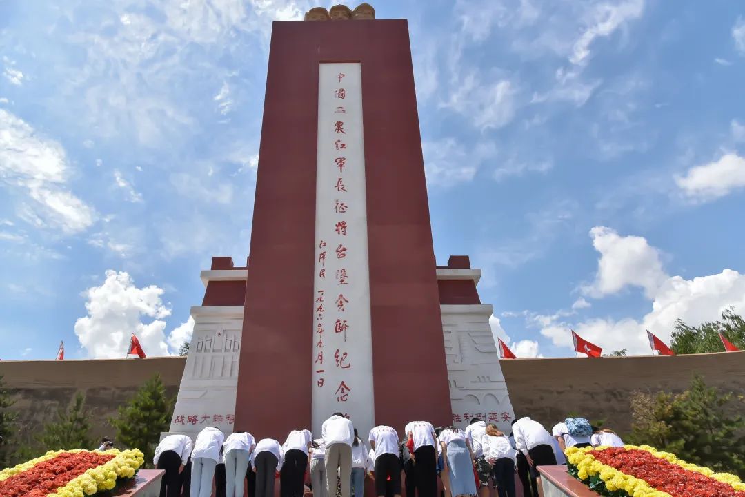 在講解員的引導(dǎo)下,我們來到了將臺(tái)堡紅軍長(zhǎng)征會(huì)師紀(jì)念碑,向紅軍長(zhǎng)征會(huì)師紀(jì)念碑敬獻(xiàn)花籃、瞻仰紀(jì)念碑,詳細(xì)了解了紅軍長(zhǎng)征在西吉的革命歷史,對(duì)長(zhǎng)征精神有了更加深刻的理解。在將臺(tái)堡紅軍長(zhǎng)征會(huì)師紀(jì)念碑前,我們整齊列隊(duì),靜默肅立,向?yàn)橹袊?guó)人民解放事業(yè)和共和國(guó)建設(shè)事業(yè)英勇獻(xiàn)身的先烈鞠躬,向忠魂致敬。