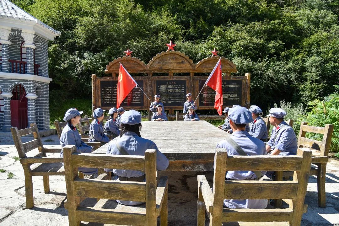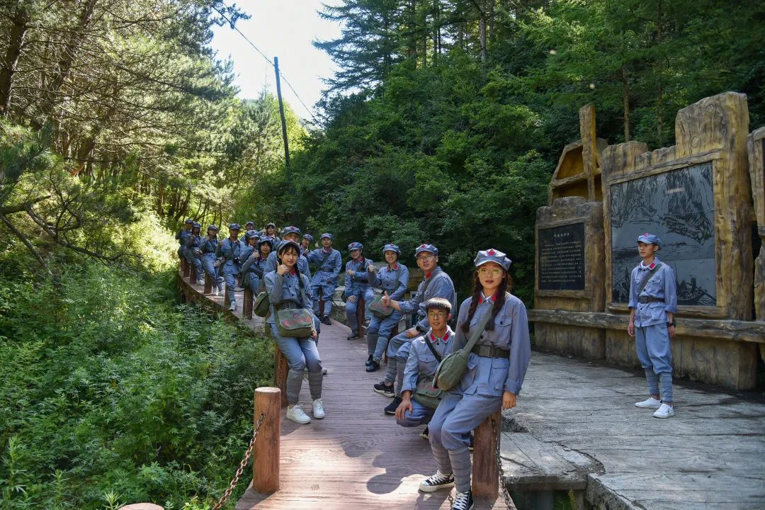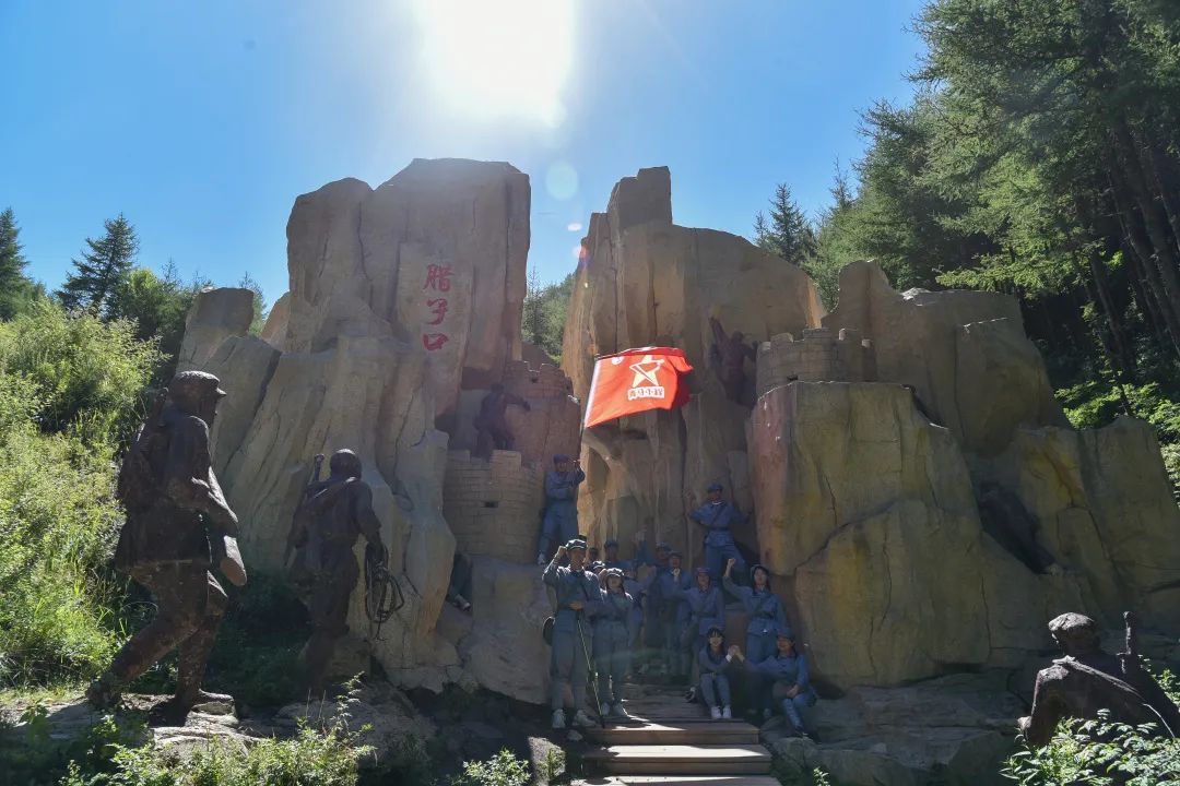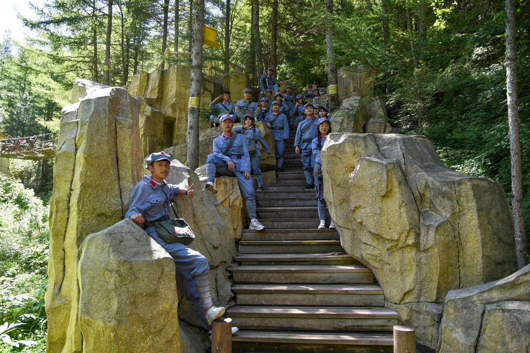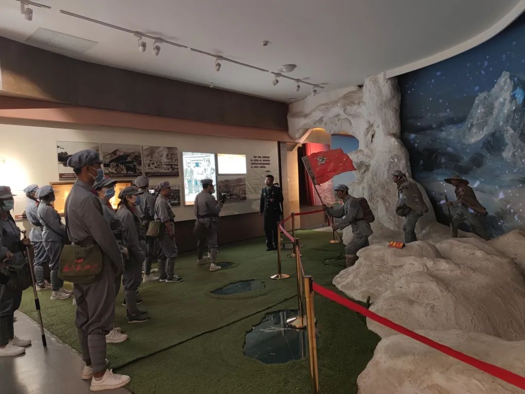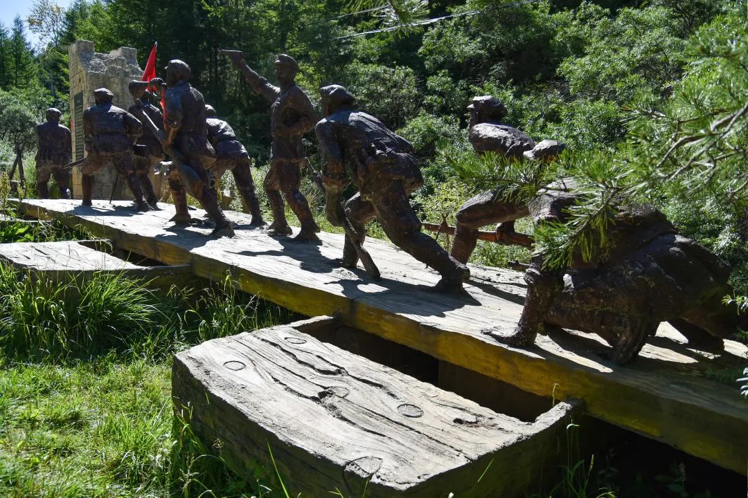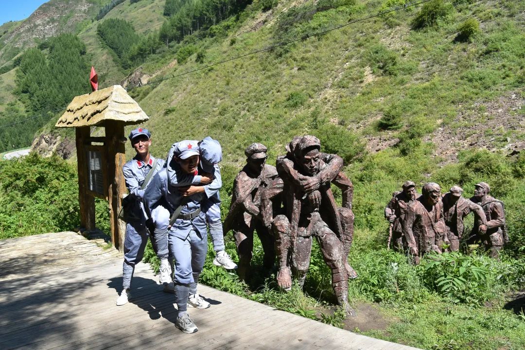 “紅軍小道”上,以雕像群與場景復原的形式再現(xiàn)了從江西瑞金到陜北長征路上重大事件的十八個主要場景,從山腳沿小道千回百轉(zhuǎn),“四渡赤水”“懋功會師”等經(jīng)典場景逐一呈現(xiàn),隊員們被深深吸引,在“血戰(zhàn)湘江、突破烏江,遵義會議、巧渡金沙江、飛奪瀘定橋、艱難草地行、會師臘子口”等場景中合影,探尋著當時的紅色記憶。