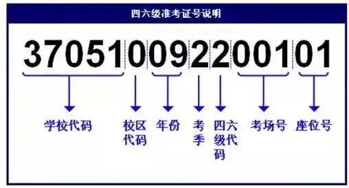 3.理論推導(dǎo)。其中前5位是學(xué)校代碼。第6位是學(xué)校的校區(qū)代碼。第7-8位是考試年份。第9位是該年中第幾次四六級(jí)考試,上半年是第1次,下半年是第2次。第10位是四六級(jí)類別,四級(jí)是1,六級(jí)是2。第11-13位是考場(chǎng)號(hào)。第14-15位是座位號(hào)。