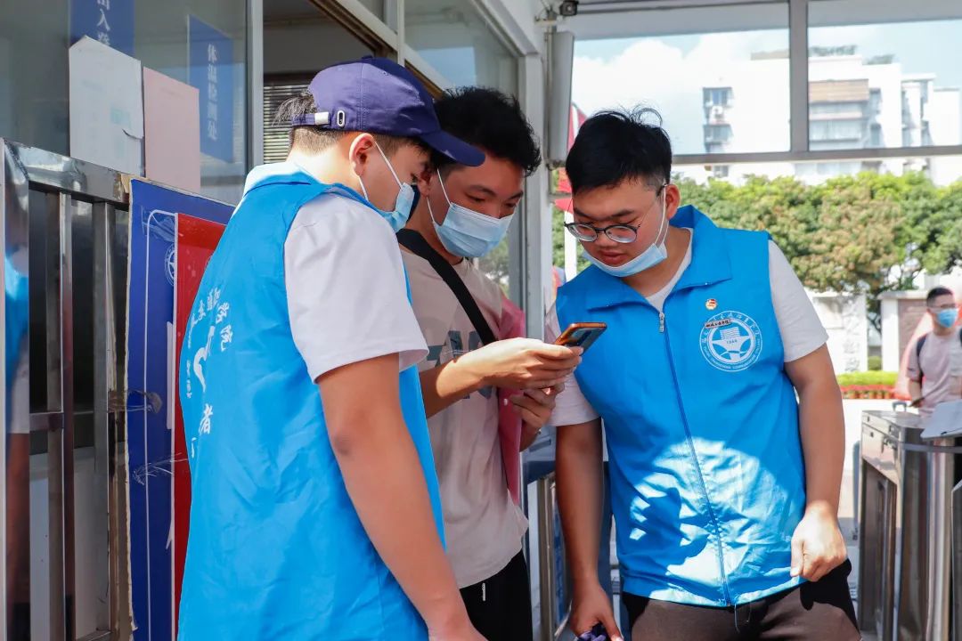 同學(xué)們?cè)凇八{(lán)馬甲”的指引下
