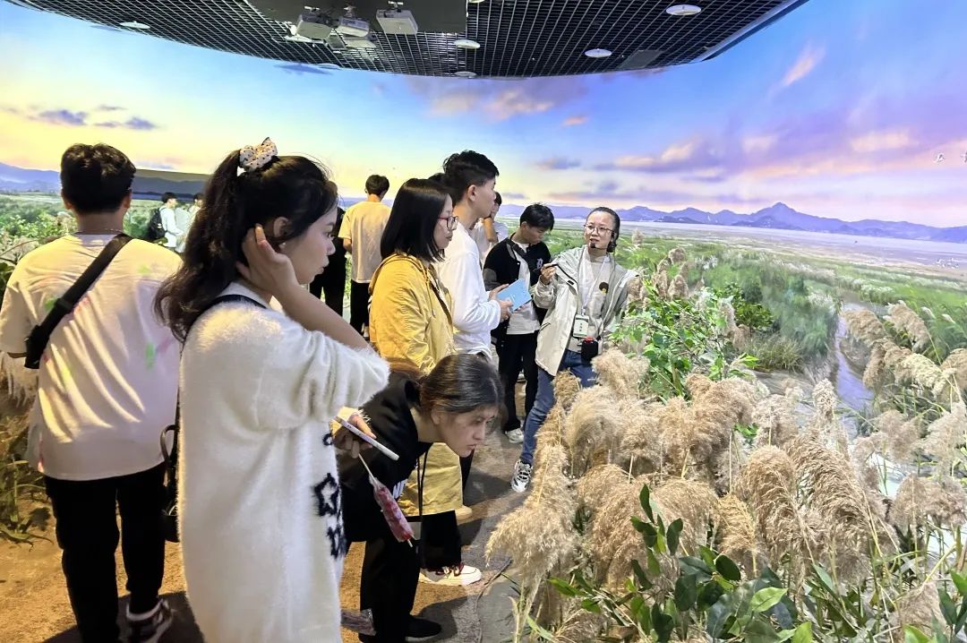 在閩江河口濕地博物館,社員們通過空中濕地模型沙盤、智能機(jī)器人互動體驗(yàn)屏等充分感受到閩江河口濕地蘊(yùn)藏的豐富自然資源以及在保護(hù)生態(tài)環(huán)境、保持生物多樣性中所起到的不可替代作用。值得一提的是展廳內(nèi)的270°環(huán)繞投影的墻面可看候鳥飛過,聽雨落、鳥鳴、雷聲,讓人仿佛置身于真實(shí)的濕地世界,切身體會到人與大自然的和諧共處,充分領(lǐng)略閩江河口國家濕地公園的自然風(fēng)光,深刻感受福建生態(tài)文明建設(shè)成果。