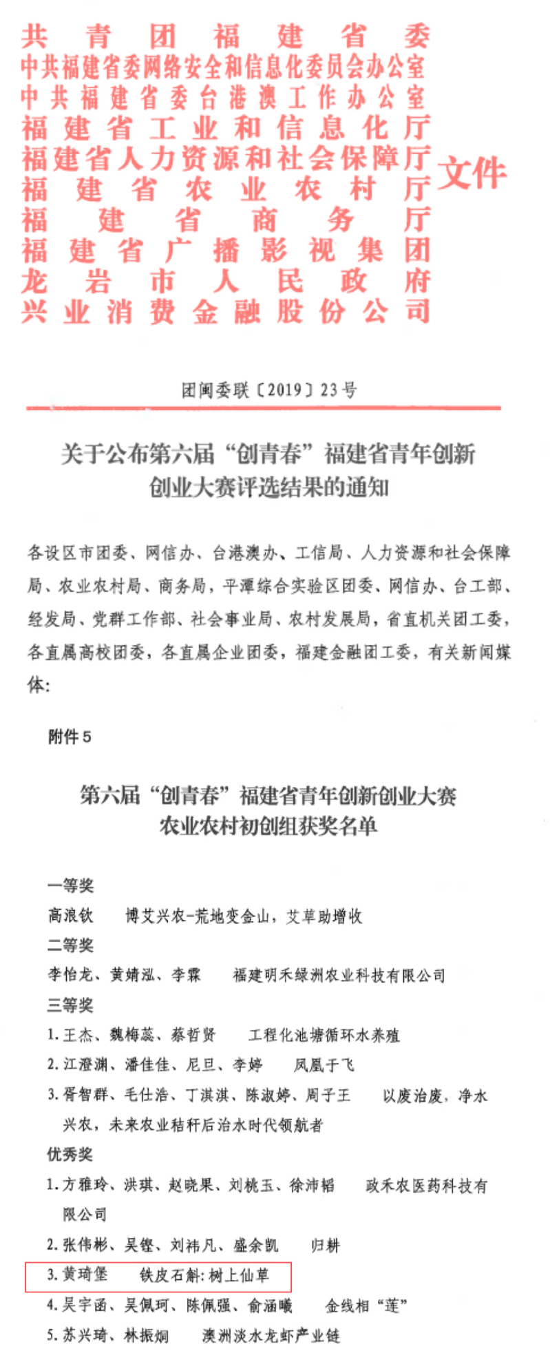 “創(chuàng)青春”第六屆福建省青年創(chuàng)新創(chuàng)業(yè)大賽農(nóng)業(yè)農(nóng)村初創(chuàng)組優(yōu)秀獎